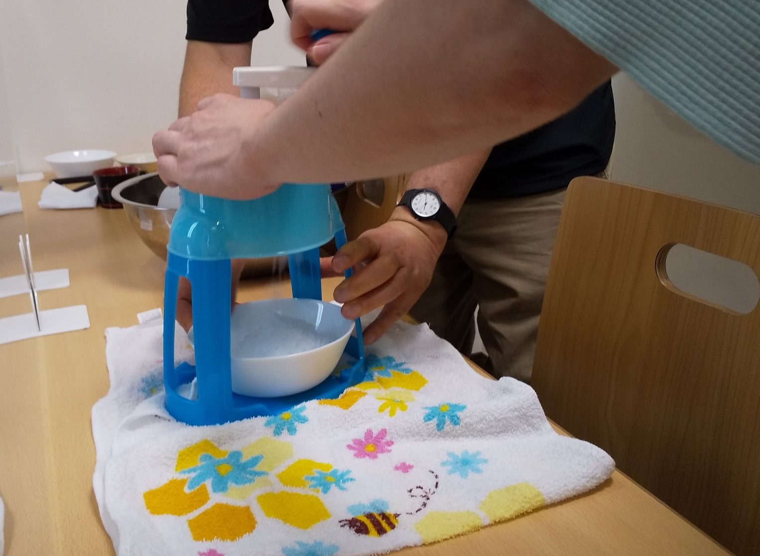 利用者 2022.08.31 かき氷を食べよう🍧 櫻の杜ハウスのさくらご飯に続き、転でもかき氷を作って食べるプログラムを行いました♪ こちらはメロン×練乳です🍈 いちご、ブルーハワイ、レモン、メロンのシロップを用意しましたが、 みなさん思い思いの味を楽しんでらっしゃいました。 おいしかった、楽しかった、久しぶりに食べた、冷えすぎてしまった(笑) などの感想が聞かれました(^^) Prev一覧へ戻るNext