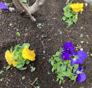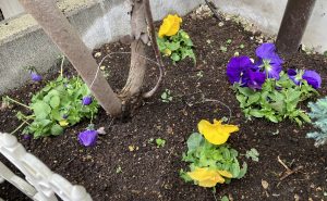 寒くなってきました。いただいたパンジーを冬の花壇に植えました。明るい色で気持ちも明るくなります。