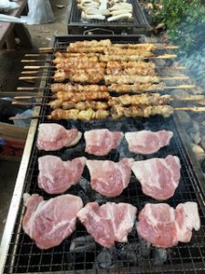 炭火で香ばしく焼き上げられる肉に魚、野菜たち……😋