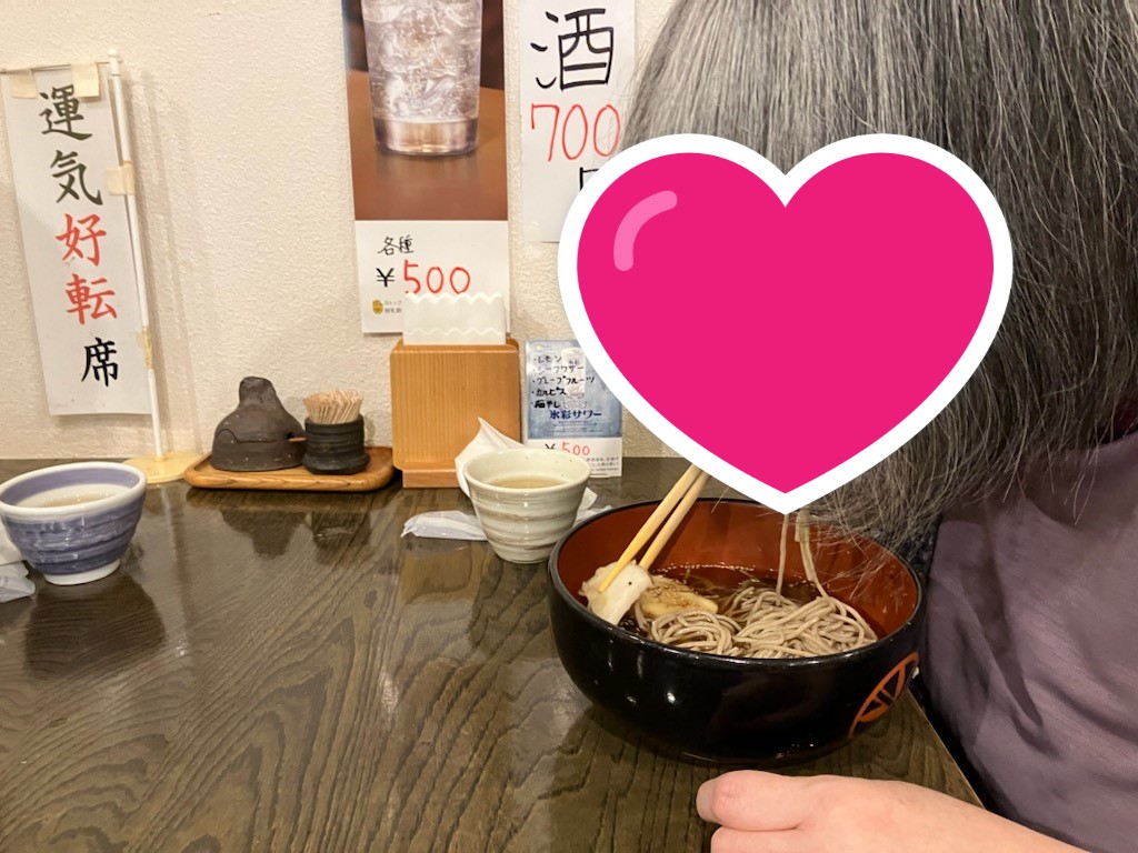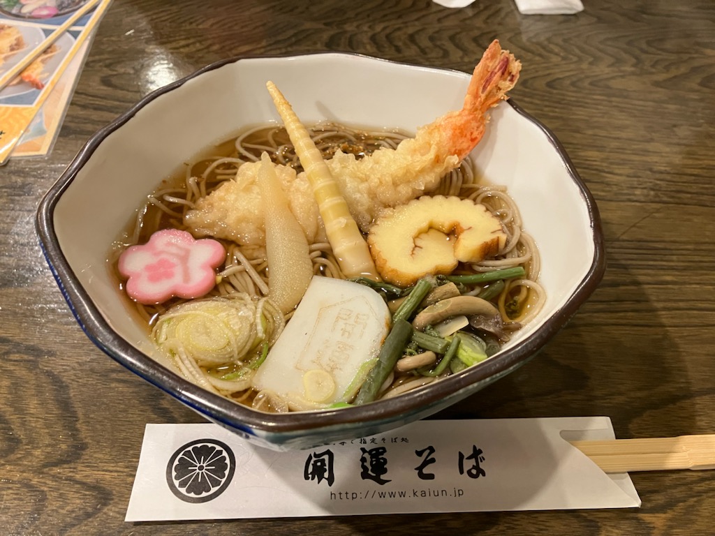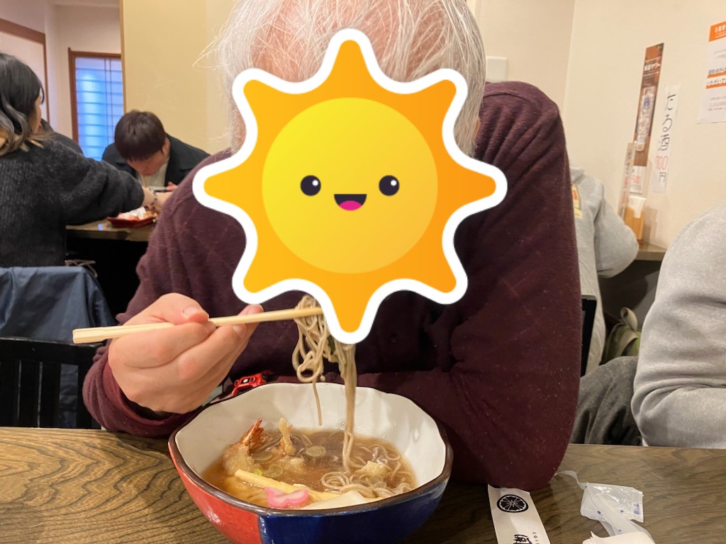 お昼はみんなで開運そばへ。