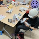 ひよしハウスの防災備蓄をみんなで点検し、非常食と簡易トイレの実演を行いました。