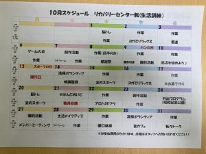 利用者 2025.10.03 リカバリーセンター転 10月スケジュール! こんにちは! 早いものでもう10月・・・今年も残すところ3ヶ月ほどになりますね。 夏の暑さも和らぎ、少しづつ秋の訪れを感じられる季節になりました。 さて、表題にある10月のスケジュールです。 【生活訓練】 【生活介護】 先日外出プログラムで映画館に行って来ました! 話題になっている映画を観てきました。 季節の変わり目で体調管理が難しい季節ですね、どうぞご自愛ください。 Prev一覧へ戻る