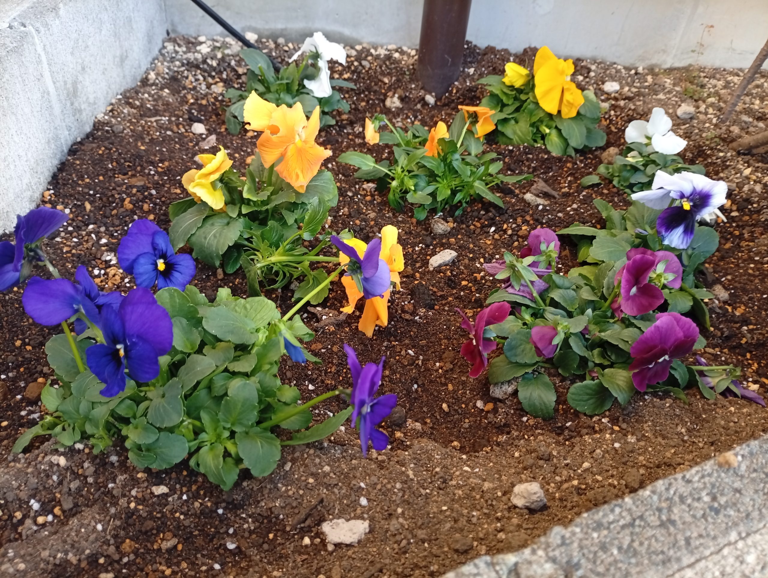 スタッフ 2026.02.24 パンジー咲いています。 これまで花壇を彩っていた百日草の季節が終わり、 やや寂しくなっっていた場所に新たにパンジーを 植えました。 いま見頃を迎え、穏やかな彩りを添えています。 春はもうすぐですね。 Prev一覧へ戻る